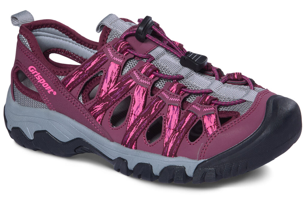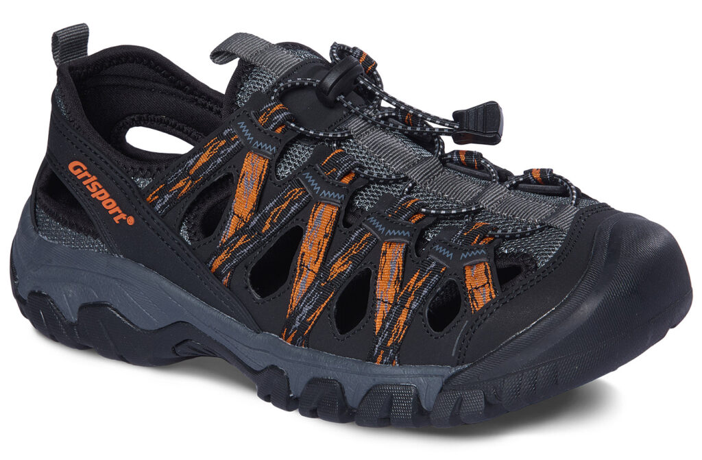 Na ciepłe dni ciekawym wyborem dla niego będą buty Grisport GR-25-03-9044M, a dla niej Grisport GR-25-03-9043L. To sandały trekkingowe o zabudowanej konstrukcji, idealne na letnie wędrówki oraz aktywności outdoorowe. Mają wytrzymałą cholewkę wykonaną z syntetycznych i tekstylnych materiałów, które zapewniają dobrą wentylację i trwałość oraz zabudowany przód z gumowym wzmocnieniem, chroniący palce przed uderzeniami o przeszkody. System szybkiego sznurowania z elastycznym ściągaczem ułatwia dopasowanie buta do stopy, a gruba, dobrze profilowana podeszwa z bieżnikiem zapewnia przyczepność na różnych nawierzchniach. Męski model jest czarny z pomarańczowymi i szarymi akcentami, w przypadku wersji damskiej szarość została połączona z różem i bordo.