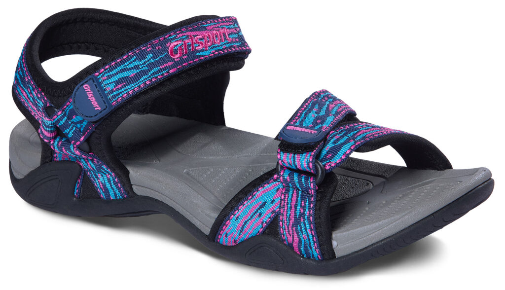 Grisport GR-25-34-9022M to lekkie i przewiewne męskie sandały trekkingowe z wysokiej jakości materiałów tekstylnych. Mają grubą amortyzowaną podeszwę, która gwarantuje doskonałą przyczepność zarówno na miejskich chodnikach, jak i w trakcie leśnych wędrówek, a profilowana wkładka z pianki dostosowuje się do kształtu stopy, oferując niespotykaną wygodę nawet przy długotrwałym użytkowaniu. Zapięcie na rzep pozwala zaś na łatwe i szybkie dopasowanie obuwia, co dodatkowo zwiększa komfort noszenia. Na uwagę bez wątpienia zasługuje ich design, bo cholewka wykonana została z trwałego materiału tekstylnego o strukturze przypominającej jeans, co nadaje im stylowy wygląd i zdobi je widoczne czerwone logo. Podobną wygodę i stabilność oferuje szaro-niebiesko-fioletowy model Grisport GR-25-34-9024L. To buty zaprojektowane z myślą o miłośniczkach aktywnego stylu życia, które doskonale sprawdzają się zarówno podczas letnich wędrówek po leśnych szlakach, jak i po miejskiej dżungli.