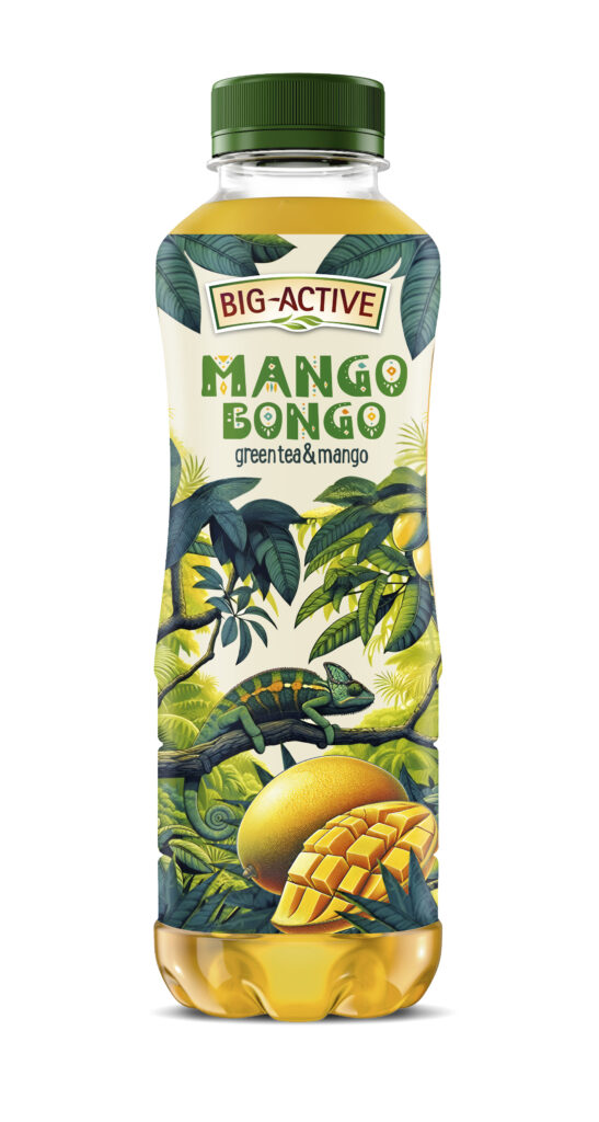Big-Active Mango Bongo to kwintesencja energetycznego orzeźwienia! Mango Bongo to pyszne połączenie delikatnego smaku zielonej herbaty ze słodkim, soczystym mango. W tym wariancie dwie grafiki na butelkach zainspirowane zostały afrykańskimi plemionami i nieodkrytą dżunglą.