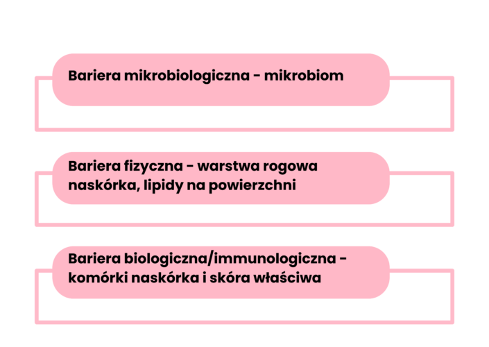 Skóra, będąc najbardziej zewnętrznym organem naszego organizmu stanowi barierę przed różnymi czynnikami środowiska, także przed niepożądanymi drobnoustrojami. Na ochronę składają się 3 główne elementy. Bariera mikrobiologiczna/mikrobiomowa to niezliczone drobnoustroje kolonizujące skórę, utrudniające/uniemożliwiające osiedlanie się innym drobnoustrojom chorobotwórczym. Kolejna bariera, zwana fizyczną to prawidłowa struktura warstwy rogowej z płaszczem hydrolipidowym o pH od 4 do 6,5 i obecnością związków o działaniu przeciwbakteryjnym. Istotną linią obrony jest bariera immunologiczna, a więc komórki Langerhansa w naskórku i komórki odpornościowe występujące w skórze właściwej.