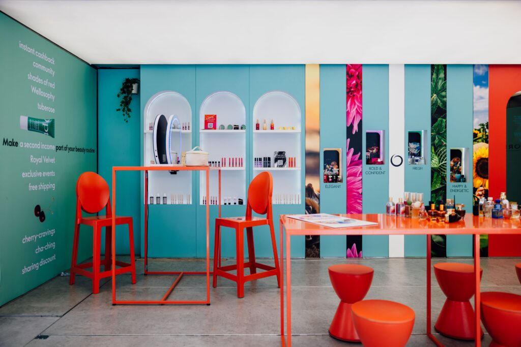 Przestrzeń trucka została zaprojektowana z myślą o dobrym samopoczuciu uczestników -wygodne siedziska, pastelowa kolorystyka, a także przyjazna przestrzeń do rozmów w gronie społeczności Oriflame z ekspertami marki. To wszystko po to, by przybliżyć odwiedzającym szeroką gamę produktów, ale również pokazać im, jak może wyglądać własne „szczęśliwe miejsce”. Jednym z wyróżników całej przestrzeni strefy jest też spektakularny dach ciężarówki, na którym obecnie znajduje się strefa chillu z leżakami i parasolami. To doskonały punkt