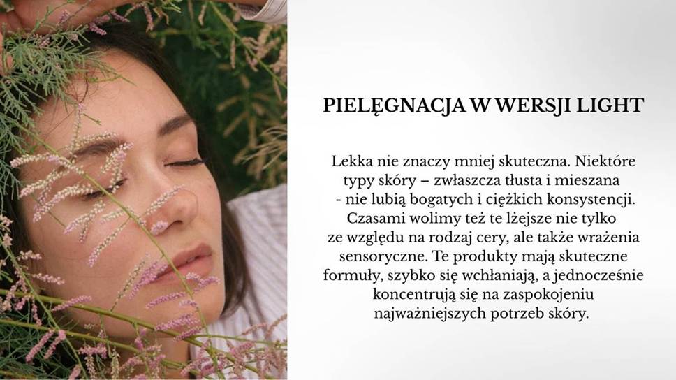 Lekka nie znaczy mniej skuteczna. Niektóre typy skóry – zwłaszcza tłusta i mieszana nie lubią bogatych i ciężkich konsystencji. Czasami wolimy też te lżejsze nie tylko ze względu na rodzaj cery, ale także wrażenia sensoryczne. Te produkty mają skuteczne formuły, szybko się wchłaniają, a jednocześnie koncentrują się na zaspokojeniu najważniejszych potrzeb skóry.