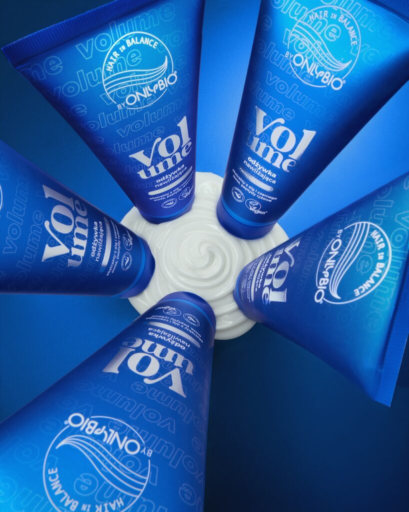 Seria Volume Hair in Balance OnlyBio oferując formuły, które wspierają włosy w osiągnięciu naturalnej objętości, unosi włosy od nasady, dodając im objętości i lekkości. Jednocześnie regeneruje i intensywnie nawilża pasma, sprawiając, że włosy stają się miękkie i pełne blasku.